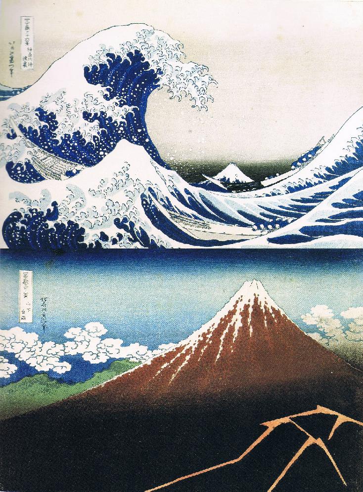 最後の絵は言わずと知れた、葛飾北斎の絵である。明るさ、大胆な構図、何よりも感じる自由さ。印象派の人々が影響されたのも無理は無い。版画の為本物は小さいが、50号程に引き伸ばした写真を見ても違和感は無い。むしろ、より迫力がありダイナミックである。100号に引き伸ばして同じであろう。