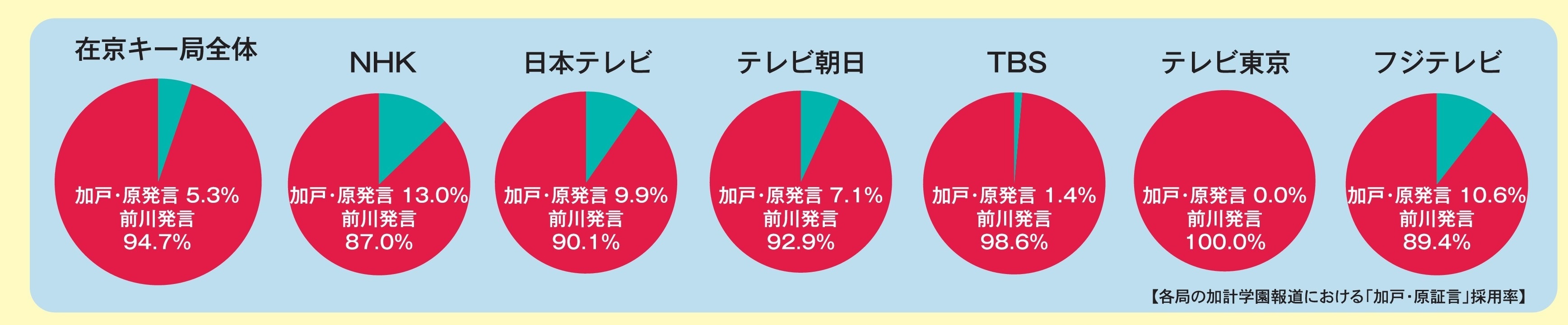 放送法遵守を求める視聴者の会』が加計問題(注2)を扱った報道を調べた結果では、NHKは前川発言を87%の時間放送したのに、加戸・原発言を13%しか放送しなかった。完全に『放送法4条:政治的に公平であること、意見が対立している問題については、できるだけ多くの角度から論点を明らかにすること』に違反である。