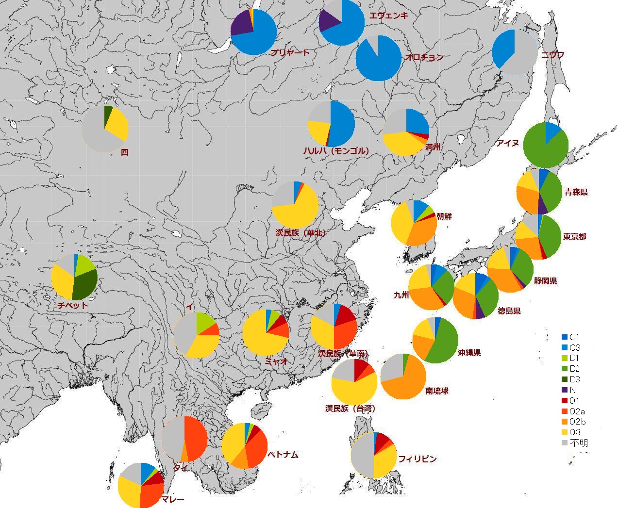 後、地図にある台湾人は台湾にいる漢民族だけで、高砂族などは違う構成だと思います。私としては、ミャンマー人のDNAを知りたかったのですが、生憎見つかりませんでした。恐らくDタイプが混在していると睨んでいます。